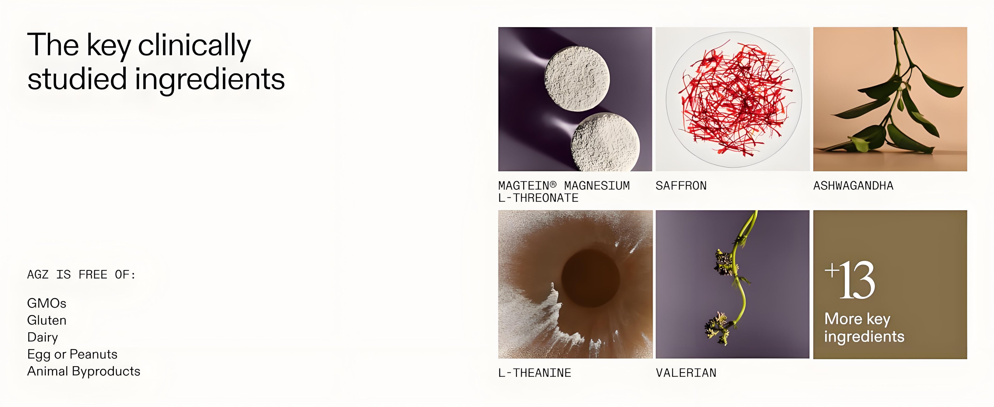 AGZ is formulated without melatonin and features a blend of ingredients including Magtein® magnesium L-threonate and saffron.*